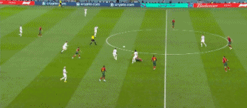 葡萄牙队的战术思路也非常清晰,一是通过双后腰的拦截与扫荡能力加固中后场防守,尤其威廉-卡瓦略还要参与组织进攻。二是充分释放B席的带球能力,他的活动范围非常大,既要回到后场拿球,还要在前场串联球队的进攻。