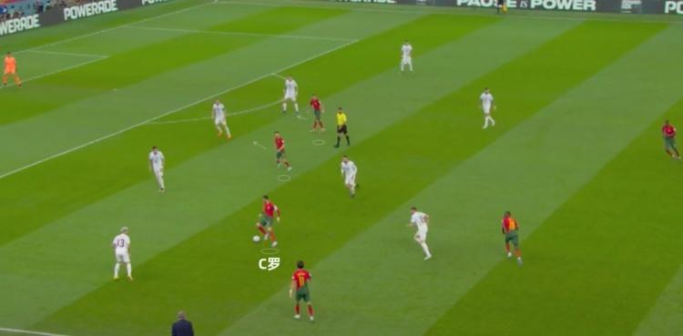 比赛的一个转折点在于上半场本坦库尔的突破打门被迭奥戈-科斯塔化解,彼时的葡萄牙防线岌岌可危,鲁本-迪亚斯就这么轻易让出了身后的空间。也正是这次机会让葡萄牙队获得喘息机会,继而借助B费的发力,比赛天平开始发生变化。