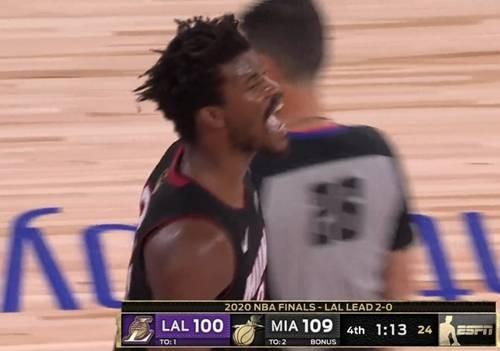 决战时刻,双方分别使用浓眉、奥利尼克为5号位的小球阵。热火以巴特勒持球一对一单挑接管,利用湖人逢掩护换防的防守策略,巴特勒连续单挑波普、大莫里斯牢牢掌控比赛走势;湖人詹眉因如影随形的夹击无法进入三秒区,全队被堵在外围投篮,湖人在终场前5分钟至1分13秒仅依靠库兹马和大莫里斯合砍5分,巴特勒在3分17秒内4回合单打独得8分杀死了比赛。