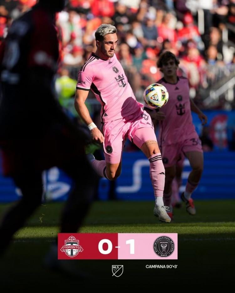 坎帕纳绝杀,迈阿密国际1-0战胜多伦多FC,8轮不败。
