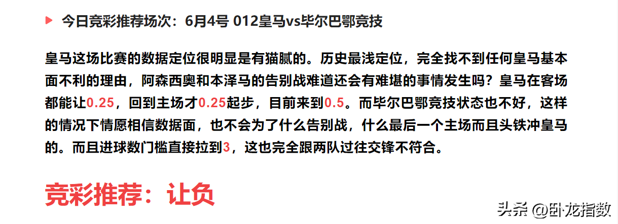 今日竞彩推荐场次:6月4号 012皇马vs毕尔巴鄂竞技