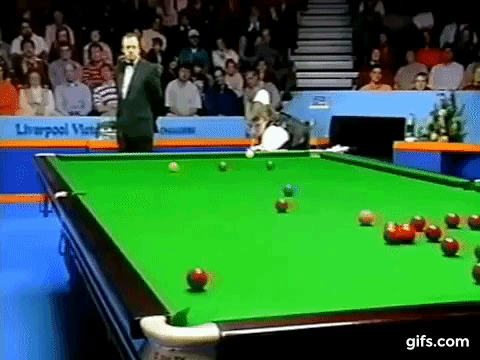 虽然赛事的重要性不及世锦赛,但这杆147的传唱度远超桑本那杆。那场比赛是两位风度翩翩的俊男对决,也是历史上闻名的高质量比赛。吉米怀特打出了斯诺克GIF届最火的粉叫黑,但相比这杆147还是小巫见大巫。
