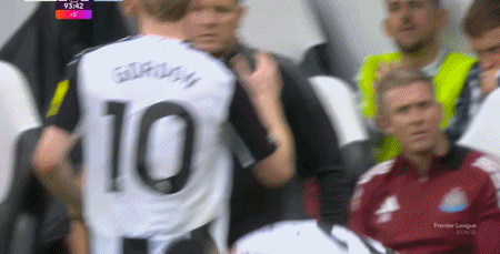 第90+4分钟,戈登被换下,阿尔米隆替补登场
