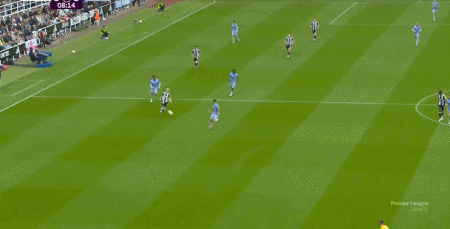 第9分钟,戈登中路分球,巴恩斯禁区外搓射,稍稍偏出球门