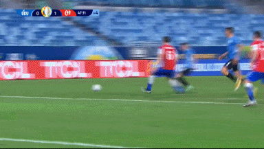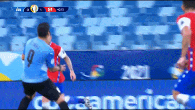 第90+3分钟,乌拉圭第2球!马克西-戈麦斯!弧顶处突施冷箭直入右下死角!乌拉圭2-1智利!↓