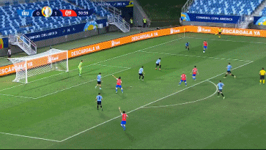 第61分钟,右肋部乌拉圭挑传,门前阿拉斯凯塔倒钩打偏。第65分钟,弧顶处乌拉圭直塞,智利后卫卡住位置,门将得到。