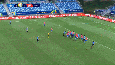 第76分钟,禁区左下定位球布里安-罗德里格斯斜开,未能抢到第1点。第85分钟,后场右路乌拉圭长传冲吊,未能将球拿下。