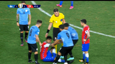 全场比赛结束,最终乌拉圭1-1智利,两轮不胜。