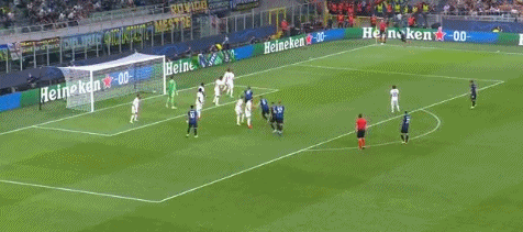 第7分钟,皇马大范围转移球到前场右侧,巴尔韦德外围一脚兜射,球稍稍高出横梁。第10分钟,国米快速进攻,阿什拉夫右路弧线球横传禁区后点,佩里西奇得球摆脱防守球员再挑传,巴雷拉跃起头球攻门,球击中横梁高出。↓