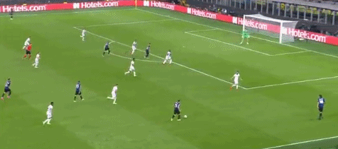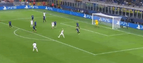 第68分钟,比达尔过顶直传向前输送,劳塔罗跟进直接头球摆渡,禁区左侧佩里西奇停球推射远角破门,皇马2-2国米!↓