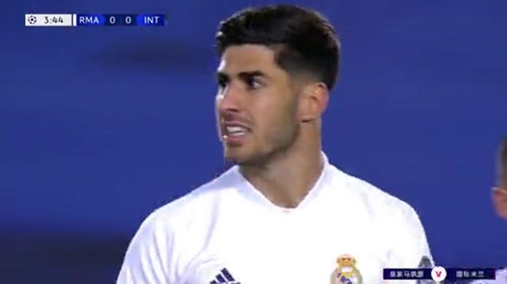 开场前半小时,国米完全压制住皇马。第36分钟,皇马开出右侧角球,米利唐抢前点头球攻门,皮球偏出立柱。1分钟后,国米也回敬了一次头球,巴雷拉右路传中,禁区内劳塔罗甩头攻门,皮球偏出远端立柱。