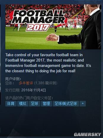 《足球经理2017》被中国玩家狂刷了差评
