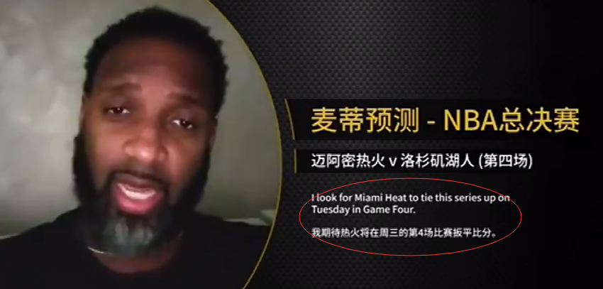 他的预测可能和大部分人都不相同,因为虽然湖人输了一场比赛,但是很多人还是相信湖人能够最终取胜,毕竟湖人总是会常规性的输掉一场比赛。而麦迪是预测热火能够G4取胜,并且看好热火最终能够夺冠,因为他相信巴特勒的表现。