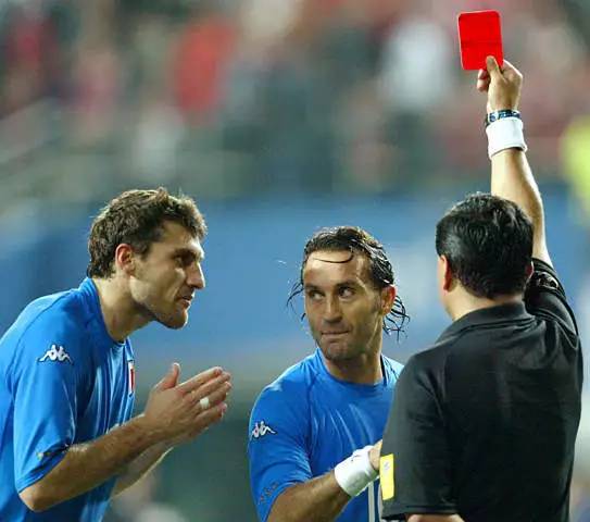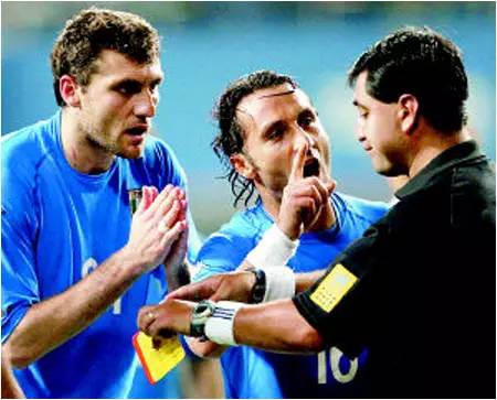 可在开场后不久,韩国队就获得了点球,不过安贞焕的点球被布冯扑出。随后意大利队在一次角球进攻中由托蒂助攻维埃里打破僵局,落后的韩国队开始大举反扑,急躁的心态加上较为粗野的球风,动作越来越大,而主裁判莫雷诺对此均视而不见。
