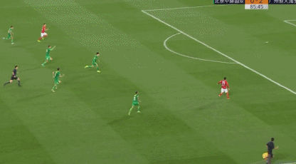比赛最后时刻,比分落后的国安球员心情显得有些急躁,韦世豪和姜涛接连因为犯规吃到黄牌。第85分钟,张琳芃后场一个大脚准确找到右侧的郑龙,后者单刀居然打偏。