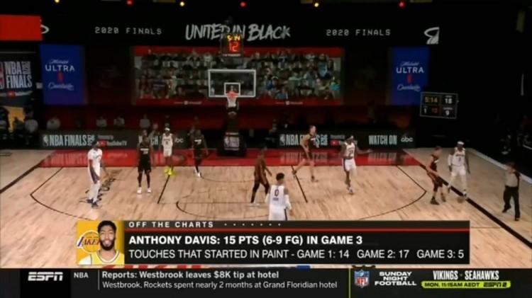据统计,戴维斯G3油漆区接球仅5次,而总决赛前两战分别是14次和17次。
