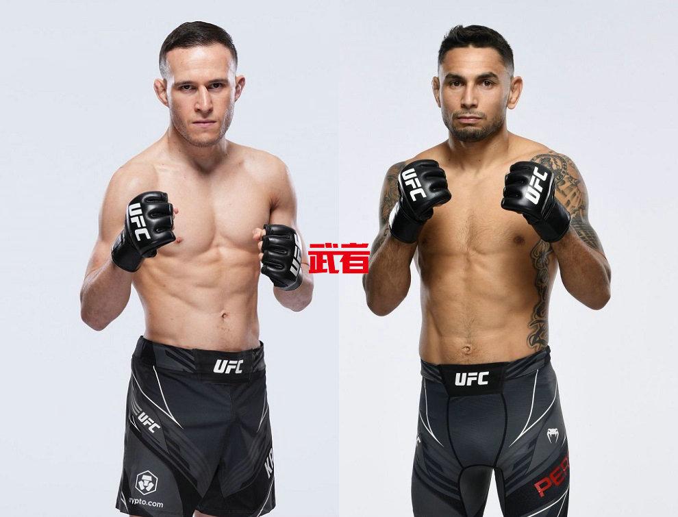 亚历克斯·佩雷兹(24-7,5 K,7 S)今年30岁,身高168cm臂展165cm。2011年开始职业MMA生涯,2015年夺得TPF蝇量级冠军,2017年以(18-4)的成绩和5连胜的状态加入UFC赛事,至今在UFC取得(6-3)的成绩。2018年被约瑟夫·贝纳维德兹(Joseph Benavidez)首局TKO告负后,取得3连胜,分别点数战胜马克·德拉·罗萨(Mark de la Rosa)、首局降服乔丹·埃斯皮诺萨(Jordan Espinosa)、首局TKO朱希尔·弗米加(Jussier Formiga)。遗憾2020年11月挑战UFC蝇量级冠军德维森·菲格雷多(Deiveson Figueiredo)被首局降服告负,刚刚在今年7月被亚历山大·潘托加(Alexandre Pantoja)首局降服告负。佩雷兹目前在UFC官方排名蝇量级第5位。