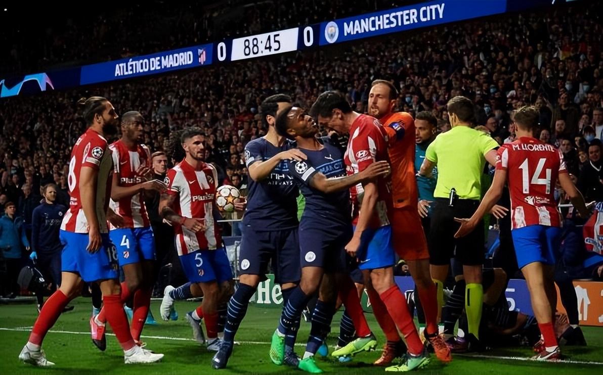 欧冠1/4决赛次回合,马竞在主场0-0战平曼城,以总比分0-1出局。而在这一场0-0平局中,曼城拖延时间的方式层出不穷,而马竞这边则是全员恶人,踢得是相当的凶。