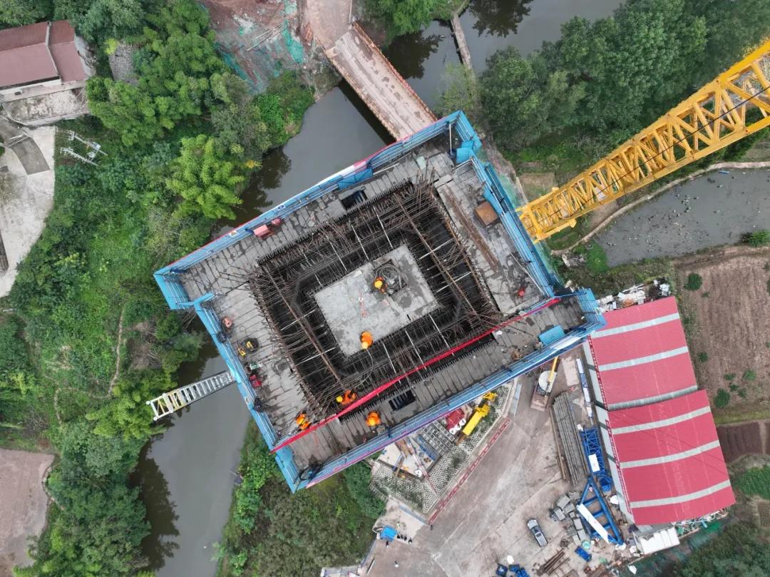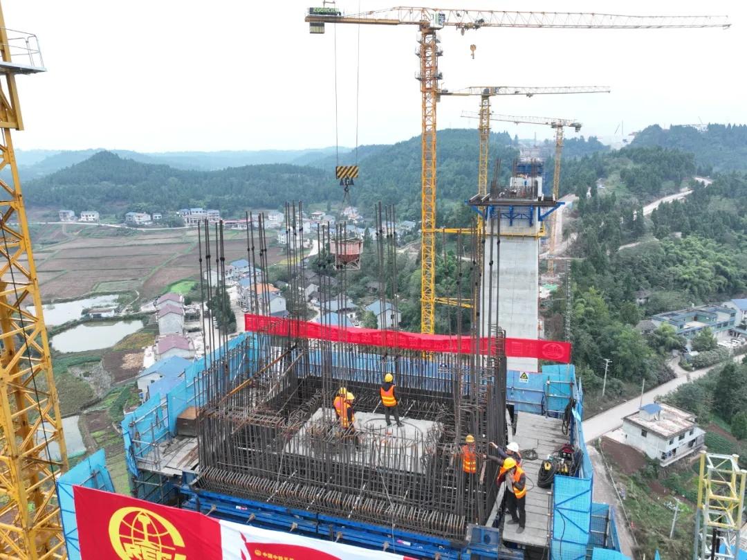 田柳湾特大桥地处安岳县境内,大桥全长1640米,设计时速350公里,沿线地形起伏较大、灌木丛生,桥墩地基相对高差达到93米,桥梁跨度在32米至40米之间,是典型的高墩大跨桥梁。全桥有39个桥墩,本次封顶的21号墩高79米,相当于26层楼高,是成渝中线高铁全线最高墩,施工人员将桥墩分为19个节段施工,共浇筑混凝土3015立方米。
