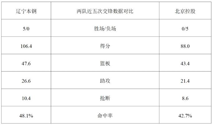 辽宁本钢与北京控股历史上一共交手21次,辽宁本钢21胜0负。