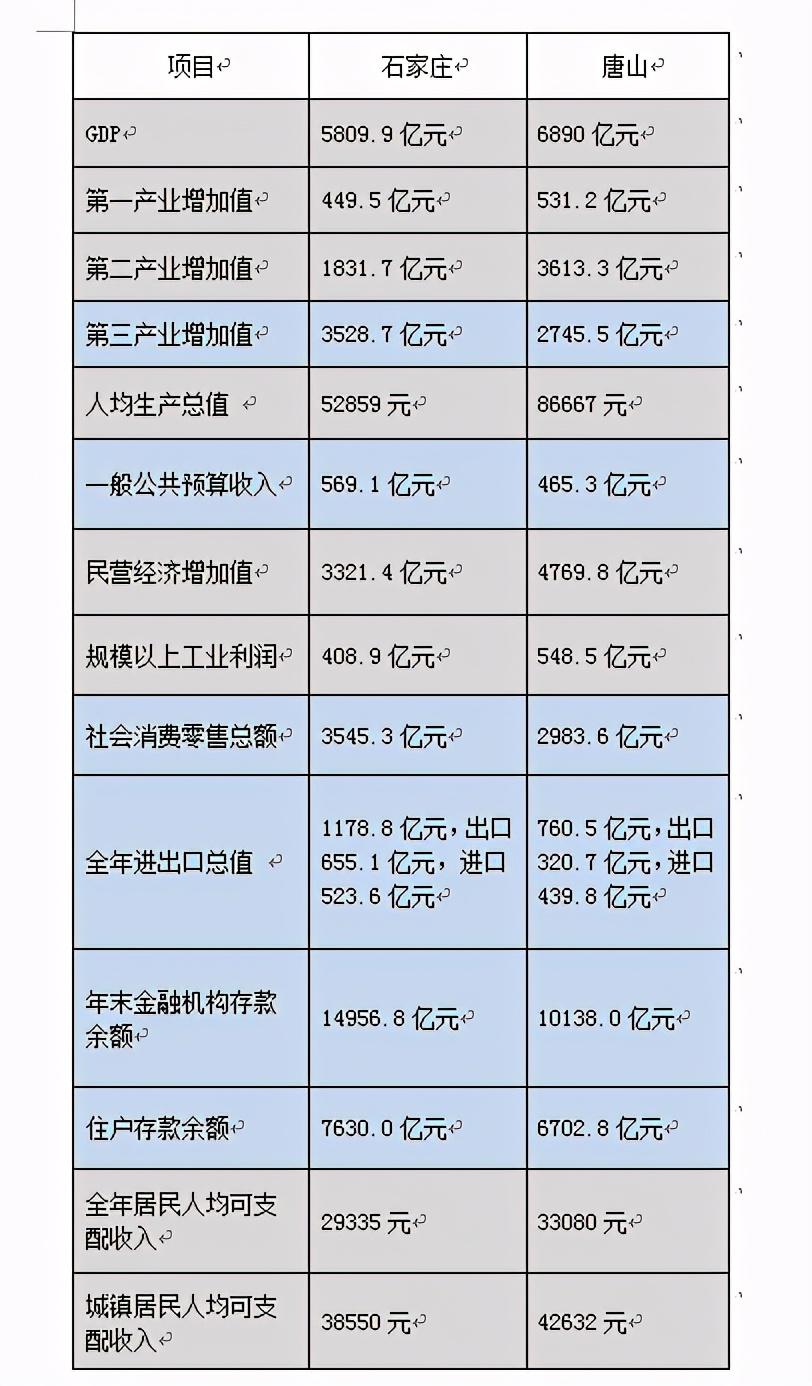 唐山第二产业远远超出石家庄,资源性城市、制造业大市不是吹的。但第三产业低于石家庄很多,说明在服务业上,石家庄走在了前面。