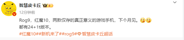 【CNMO科技消息】目前,众多主流手机厂商已纷纷宣布旗下旗舰机型的发布日程,并着手为新品的到来进行预热宣传。在这波新机潮中,ROG 9系列和红魔10系列显得尤为特别。据博主“智慧皮卡丘”透露,这两款游戏手机都将推出配备24GB+1TB存储版本的机型。
