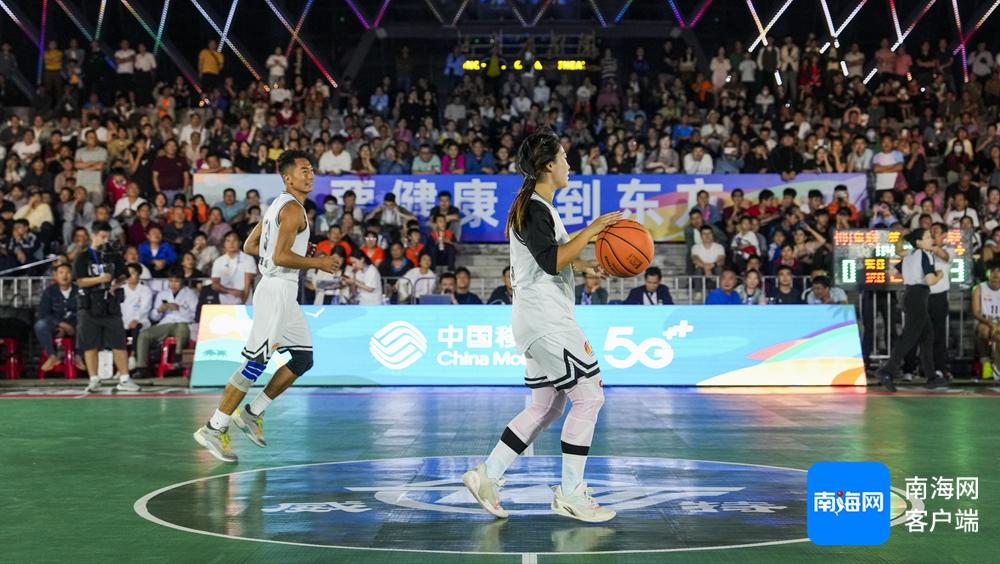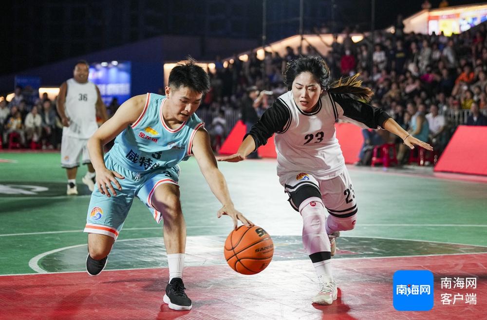 11月1日晚,2024海南东方“村BA”篮球超级联赛第二场,海南东方“村BA”明星联队67比53取胜贵州草根明星联队。记者 李昊 摄