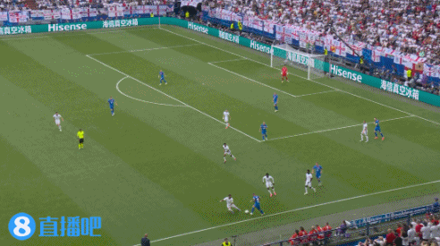 第23分钟,英格兰发起进攻,禁区内乱成一团,最终凯恩的头球被挡。↓