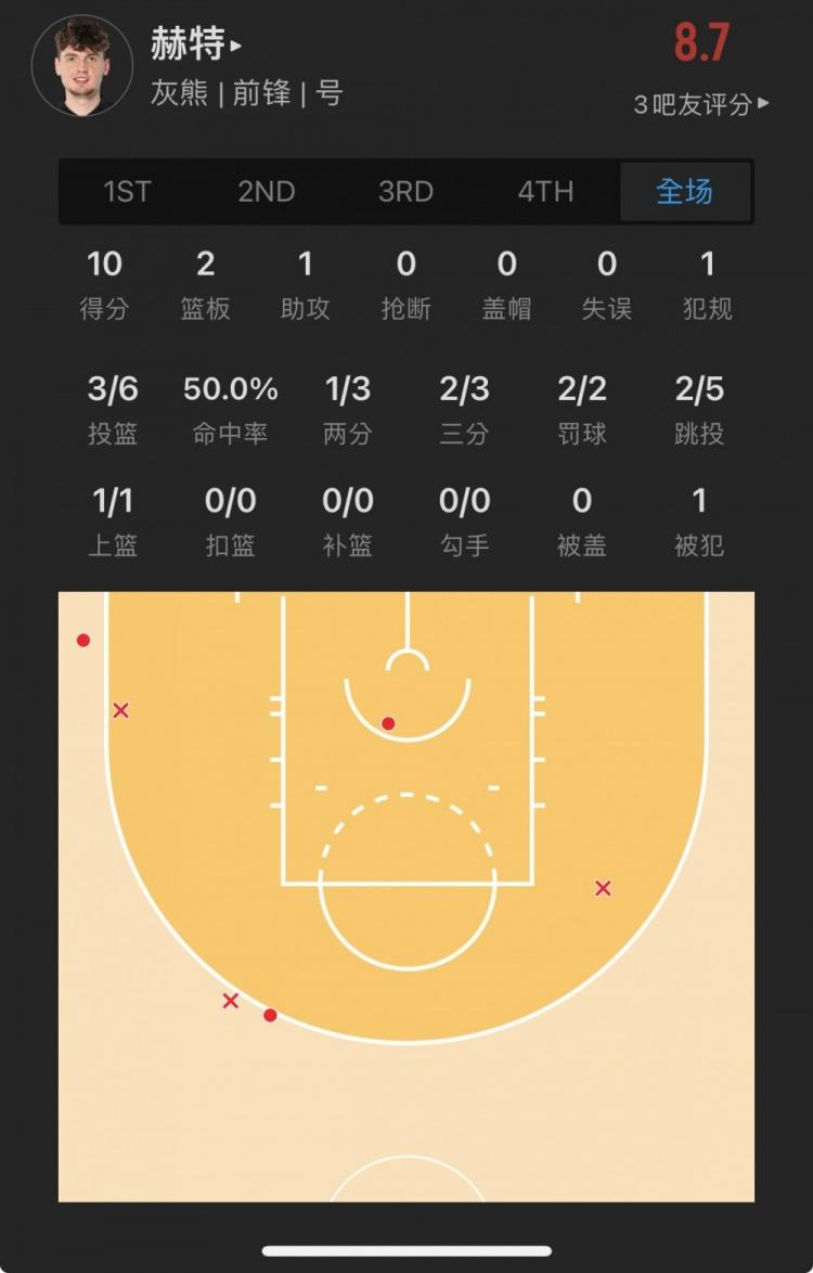 灰熊落选秀 马特-赫特 出战23.5分钟