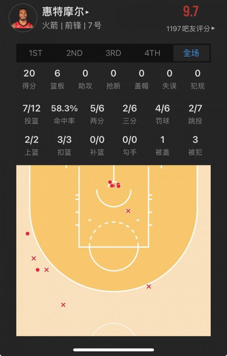 火箭20号秀 卡姆-惠特摩尔 出战18.2分钟