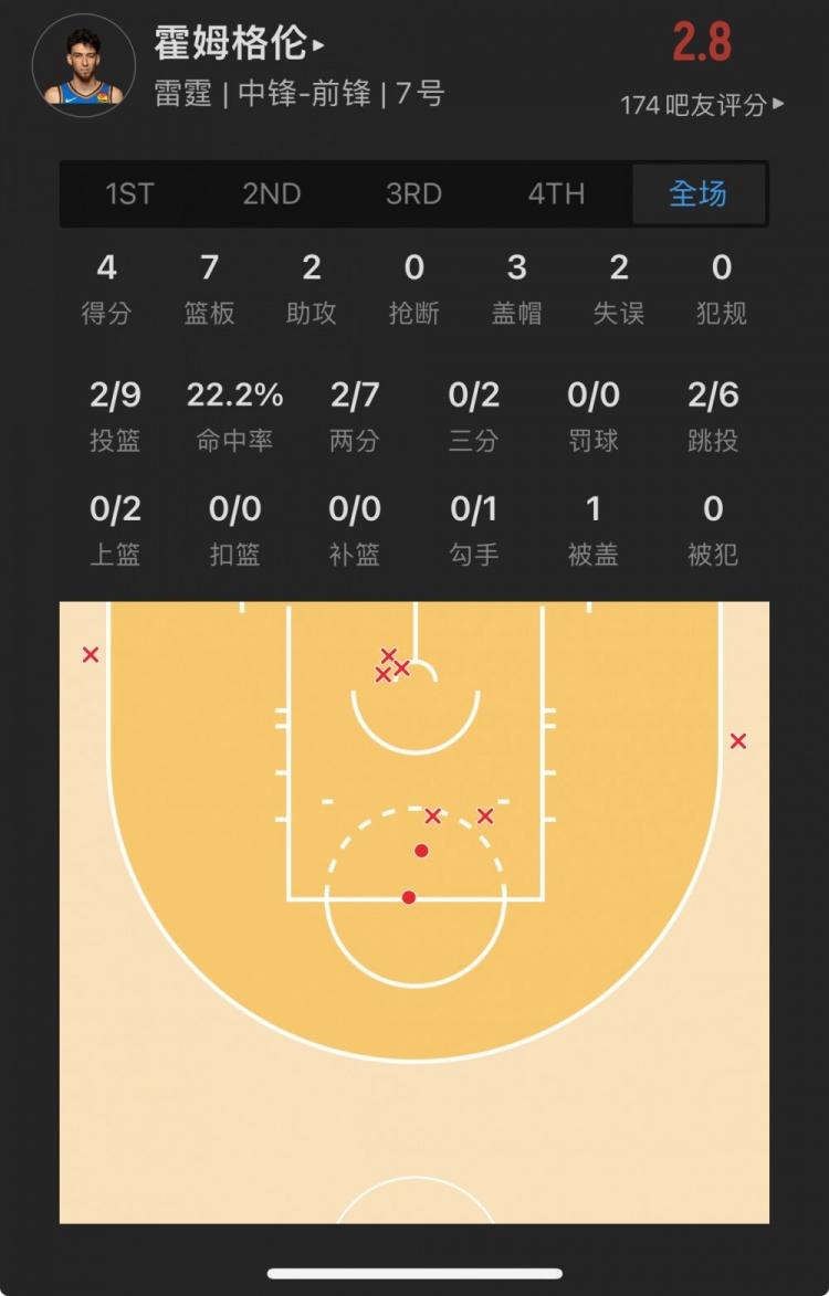 雷霆上届榜眼秀 切特-霍姆格伦 出战32.0分钟