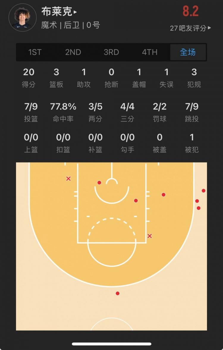 魔术6号秀 安东尼-布莱克 出战30.1分钟