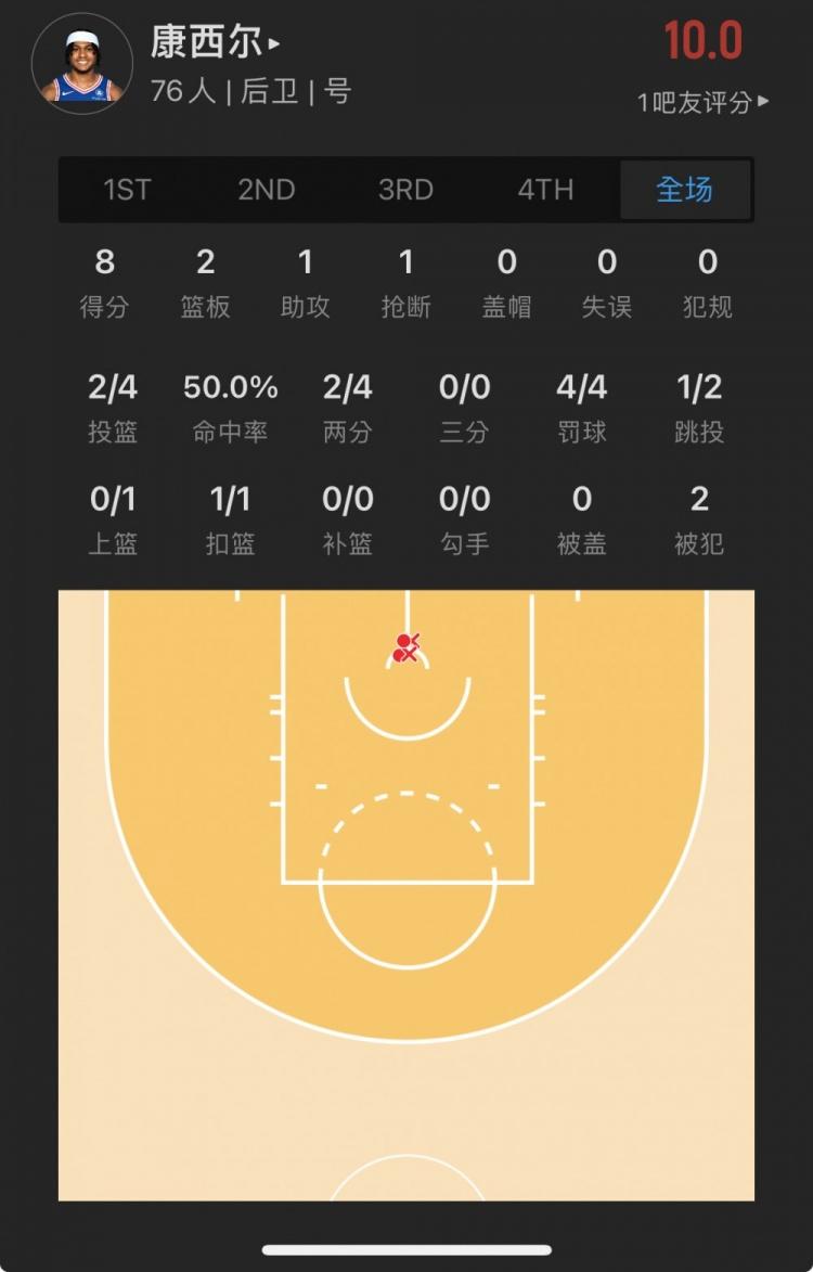 76人落选秀 里基-康西尔 出战9.1分钟