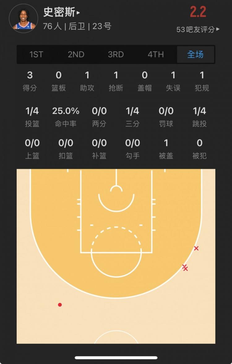 76人落选秀 特奎维翁-史密斯 出战9.1分钟