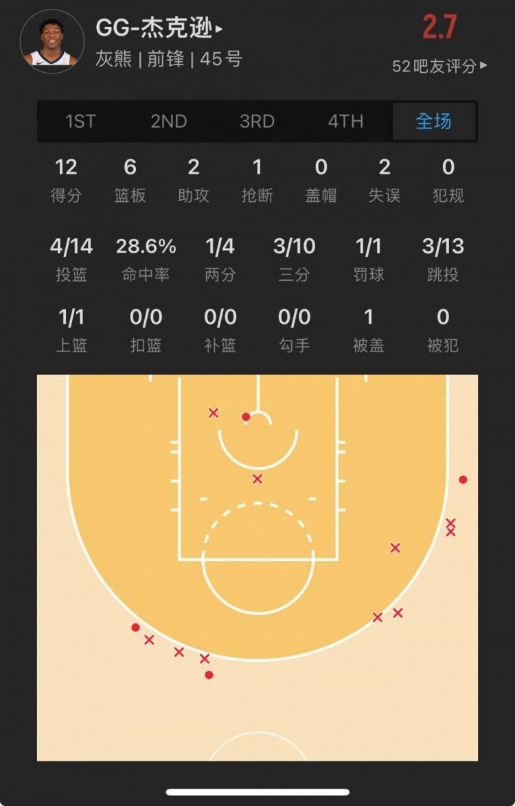 灰熊45号秀 GG-杰克逊二世 出战30.4分钟