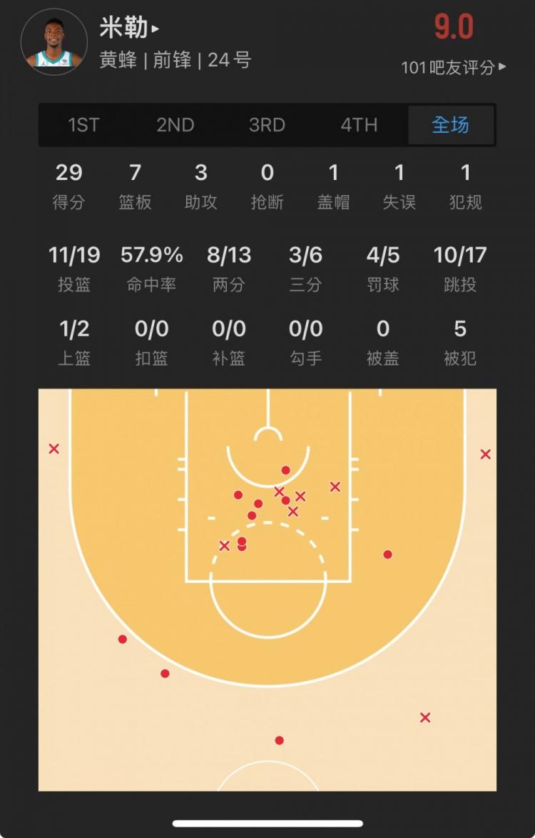 黄蜂榜眼秀 布兰登-米勒 出战38.8分钟