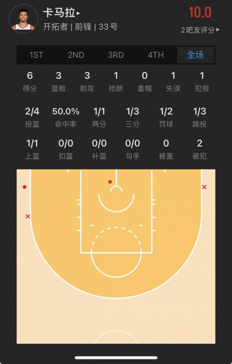 雷霆10号秀 卡森-华莱士 出战19.6分钟