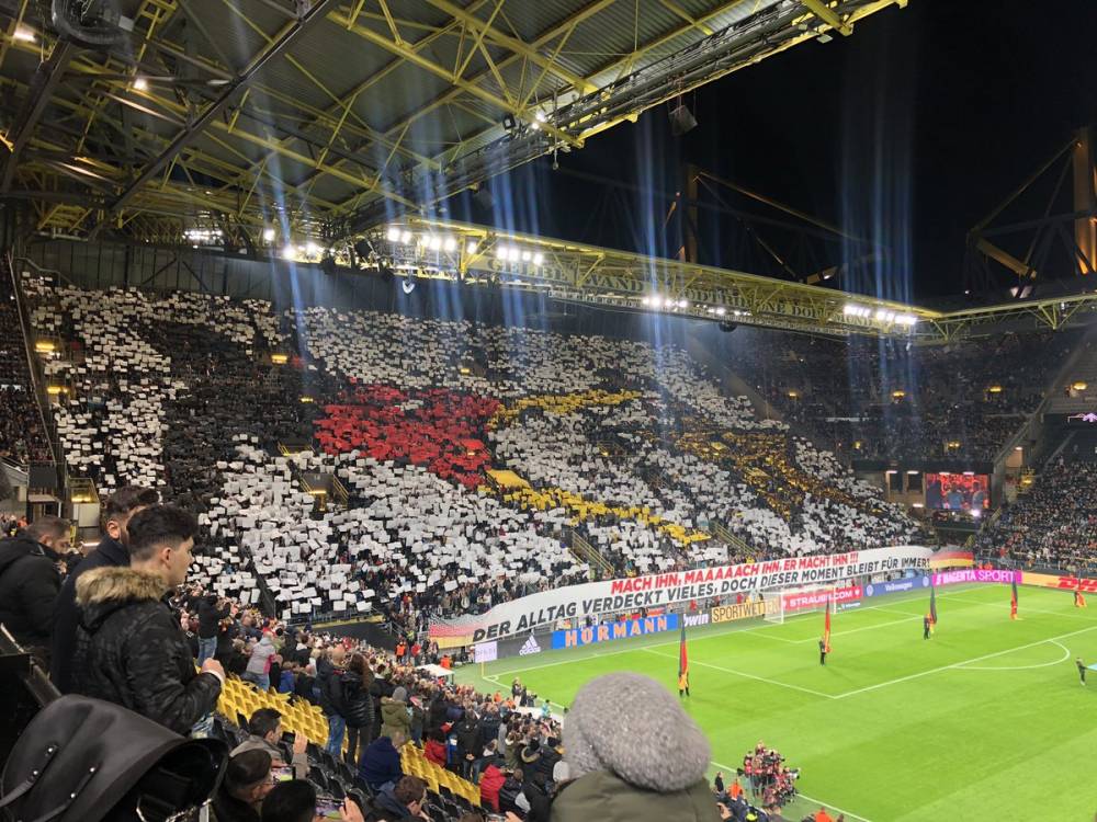 直播吧10月10日讯 国际比赛日友谊赛,德国队主场迎战阿根廷。比赛前,球迷们在看台上还原了2014年世界杯格策加时绝杀阿根廷的经典瞬间。