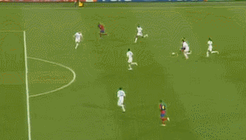 当时梅西作为球队的边锋,有着很强的突破和单兵冲击力。这一次他在侧翼的位置,在1对4的情况下,完成漂亮地带球推进,随后给出一记很有威胁的传中,险些制造了范德萨的失误。