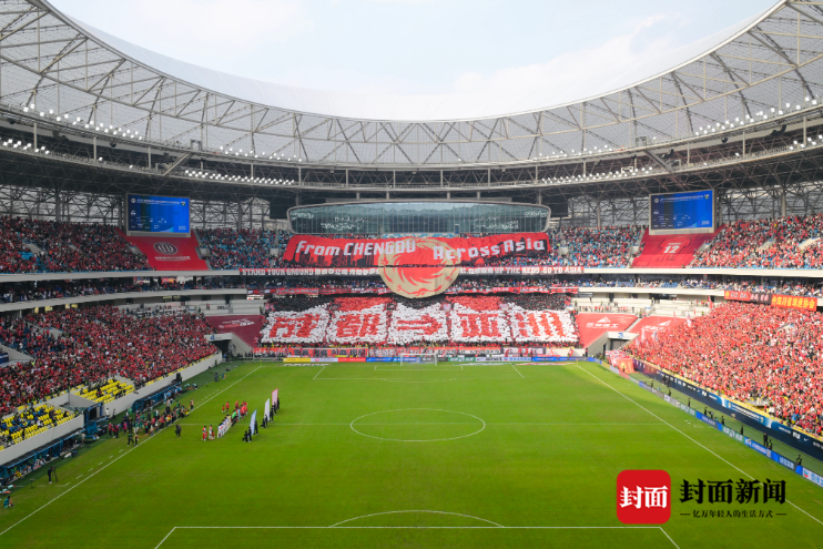 本场比赛开场前,蓉城为效力满百场的功勋球员,巴西外援费利佩举行了百场纪念仪式,徐正源与众将士为他送上了写有100号字样的球衣。当球员入场时,看台上球迷拉起“成都—亚洲”“From Chengdu across Asia(从成都出发 跨越亚洲)”,以及金沙神鸟图案的巨型TIFO。公益看台的数百名优秀社区工作者、成都市青少年宫鼓乐队队员,以及中国民用航空飞行学院的学生代表们也打出“成都雄起”的横幅,庆祝成都蓉城取得了下赛季亚冠资格。
