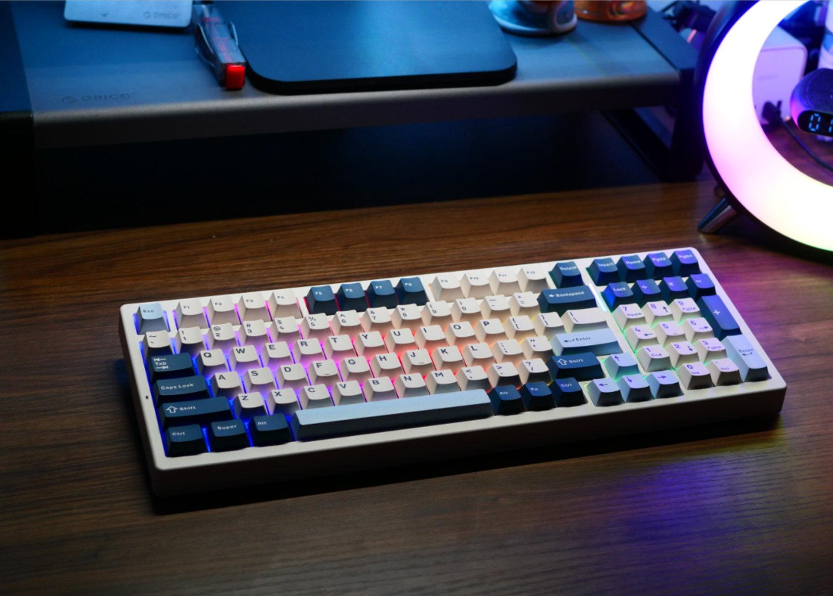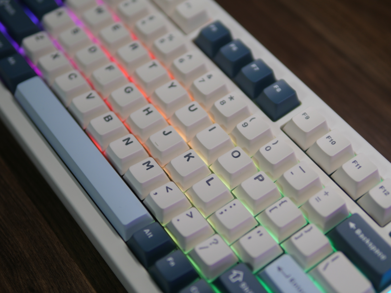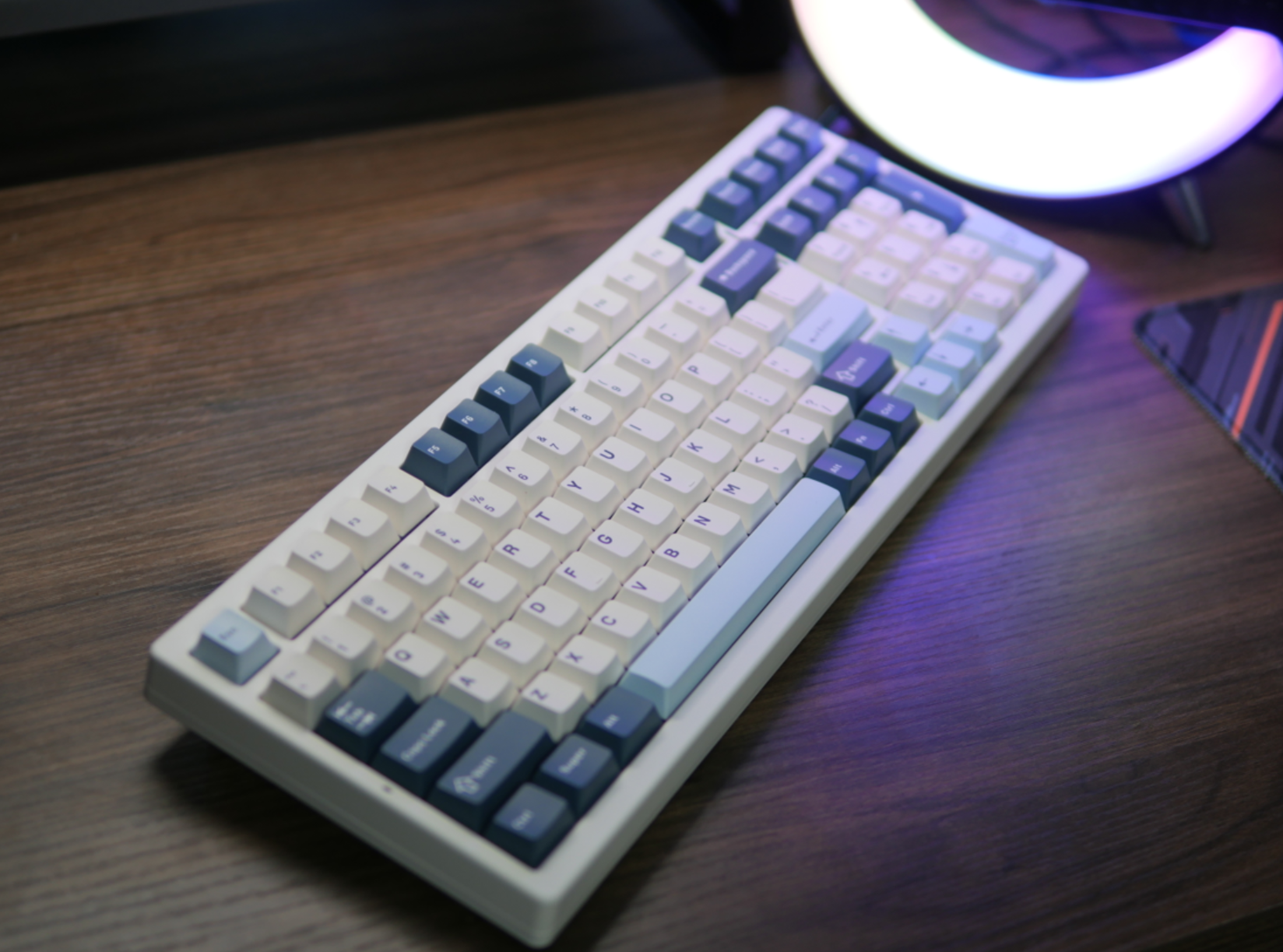 整个这边键盘的背光亮度算是中等偏上的水准吧,键帽呢是一个常规的原厂高度PBT二色。