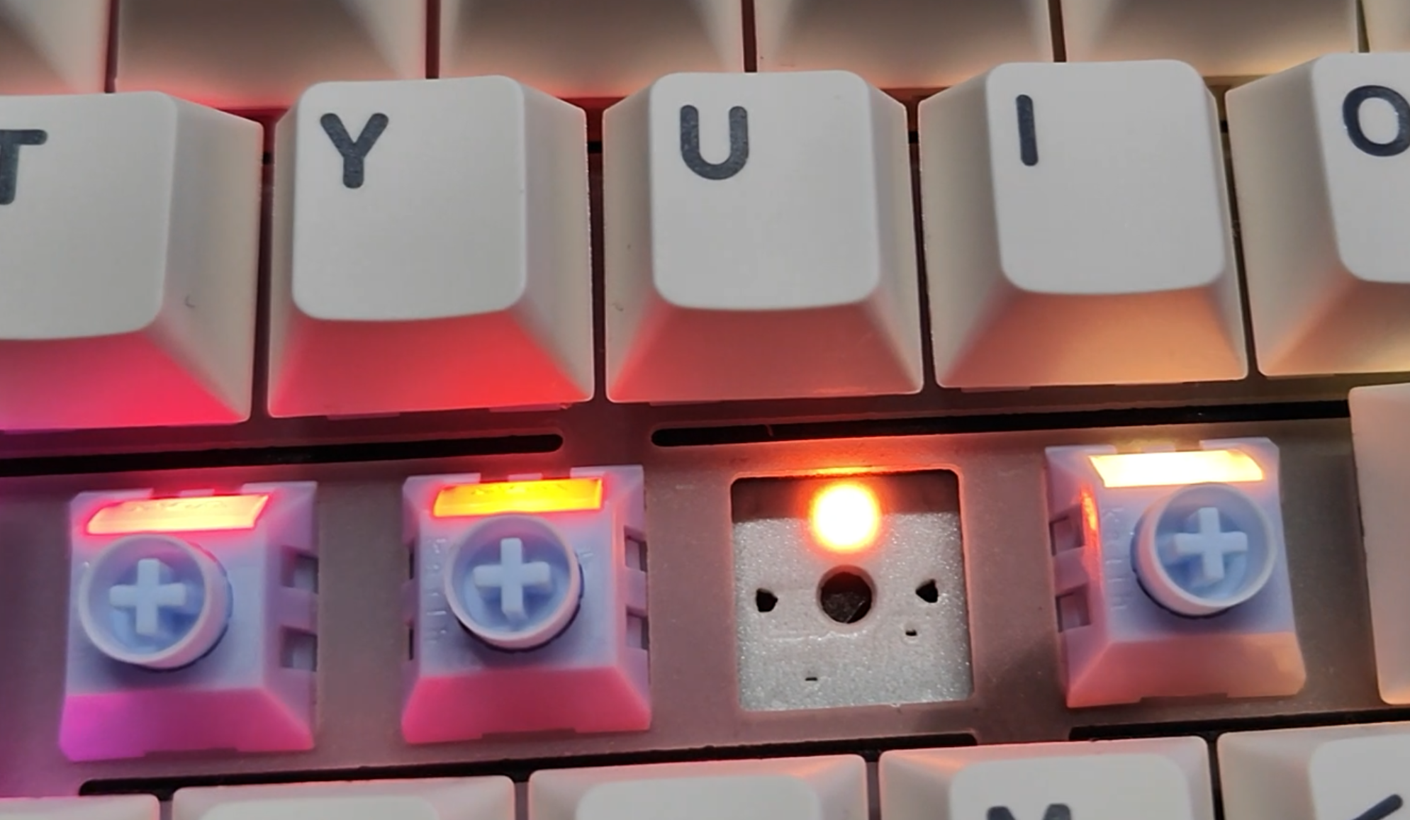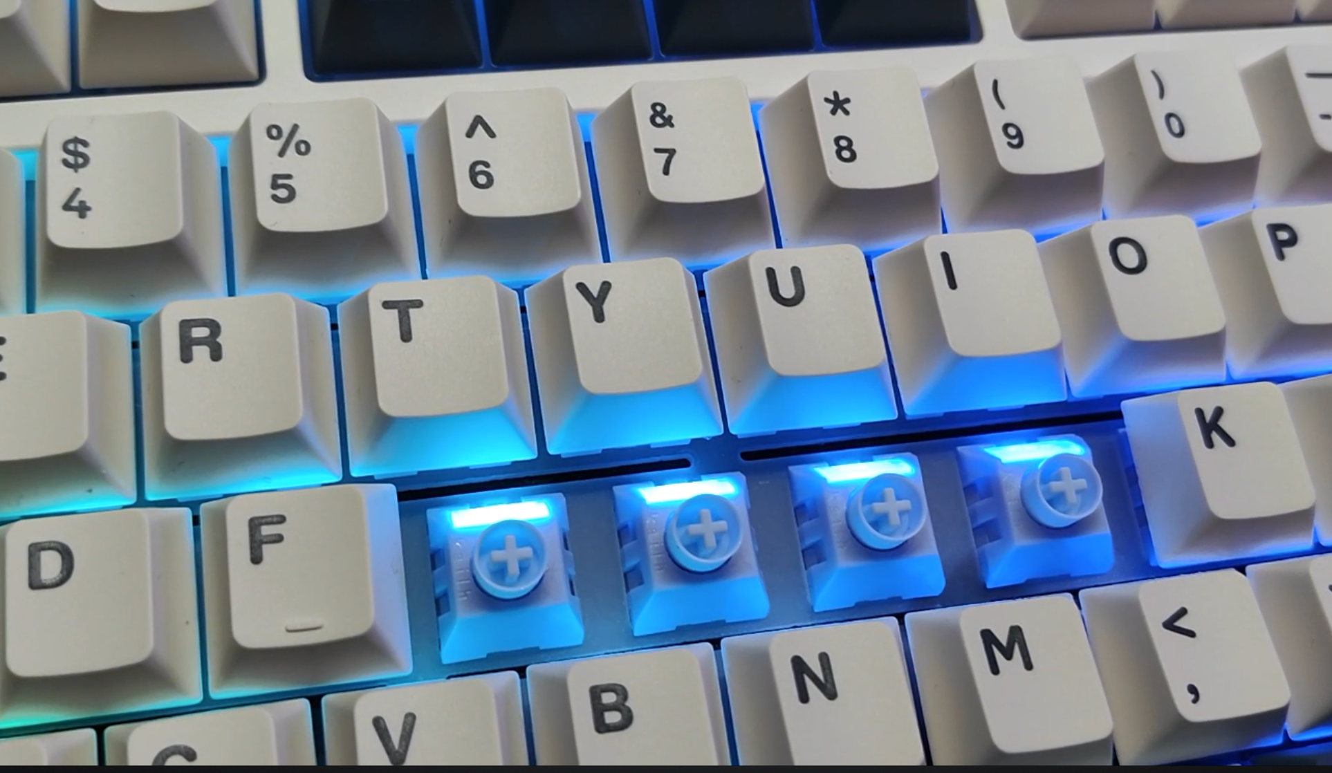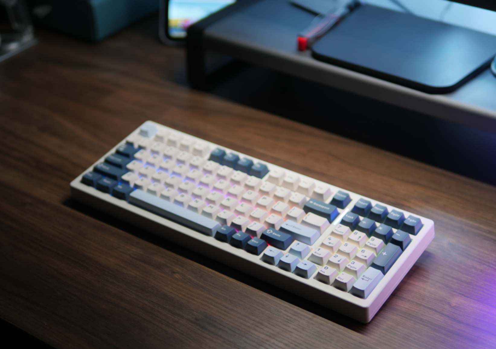 整个这边键盘的背光亮度算是中等偏上的水准吧,键帽呢是一个常规的原厂高度PBT二色。