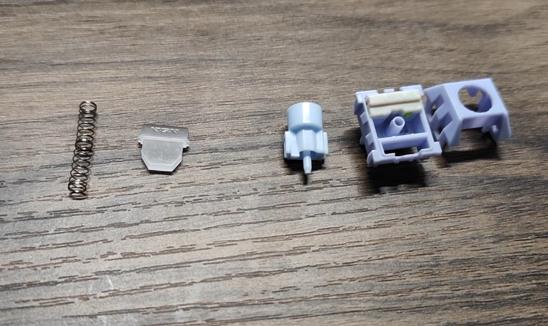 我这把的轴体是极光冰淇淋,VGN找凯华专门定制的一款轴体,包装内还送了三颗替换轴体。顺滑度非常的棒,而且加了导光结构,这个磨砂的导光片追求的不只是让光更亮,而且呢还有更均匀和柔和。这个轴触底,并没有调得很闷,所以实际效果更像是是雨滴音或者小石子音,而不是麻将音。后续我还会带来一期更详细的测试视频。