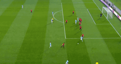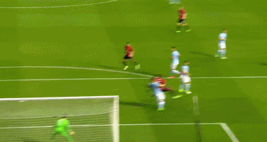 第67分钟,马略禁区前沿右侧撂倒拉什福德被黄牌警告,曼联获得任意球机会。随后小布林德虚晃一枪,拉什福德艺高人胆大稍作助跑后右脚弧线球直奔远角,阿尔瓦雷斯预判失误重心右移尽管随后做出扑救但最终只能目送皮球入网,0-1!曼联取得宝贵客场进球。