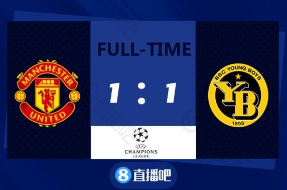全场比赛结束,曼联1-1年轻人。