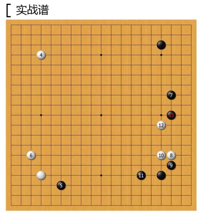 黑13拆一出乎意料,不过落在棋盘上还是很好理解,因该是觉得白棋如果挡住,黑棋就跟着贴,这样让白棋两边的拆二间隔比较窄,认为白棋是重复的形状。