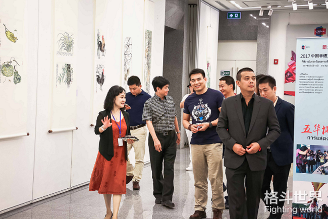 在昆仑决团队到访期间,中国文化中心正在举办“2017中国非遗文化周”,来自中国广东的非物质文化遗产传人为大家展示了提线木偶书法,并书写“马到成功”四个字送给昆仑决到访团队,预祝6月10日的昆仑决泰国站比赛成功举行,赛出水平,赛出中华民族的文化和精神。