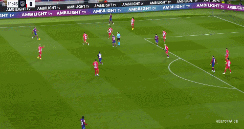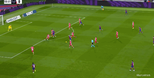 第53分钟,德容打门被扑,随后佩德里挑传和队友没有形成默契