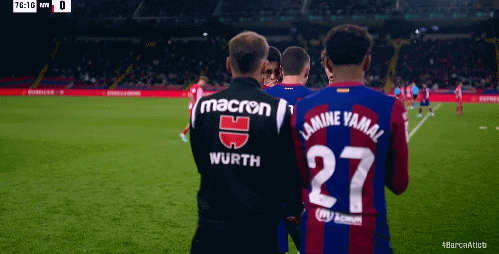第76分钟,进球功臣菲利克斯被替换下场,亚马尔替补上场