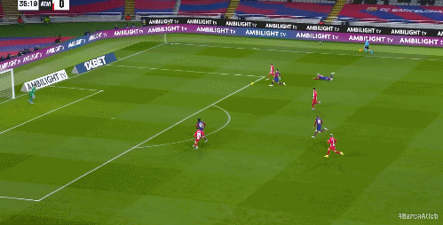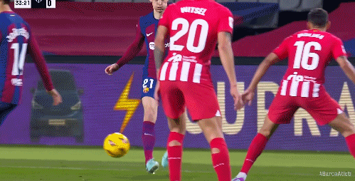 第36分钟,格列兹曼禁区左路抽射,德容飞铲解围